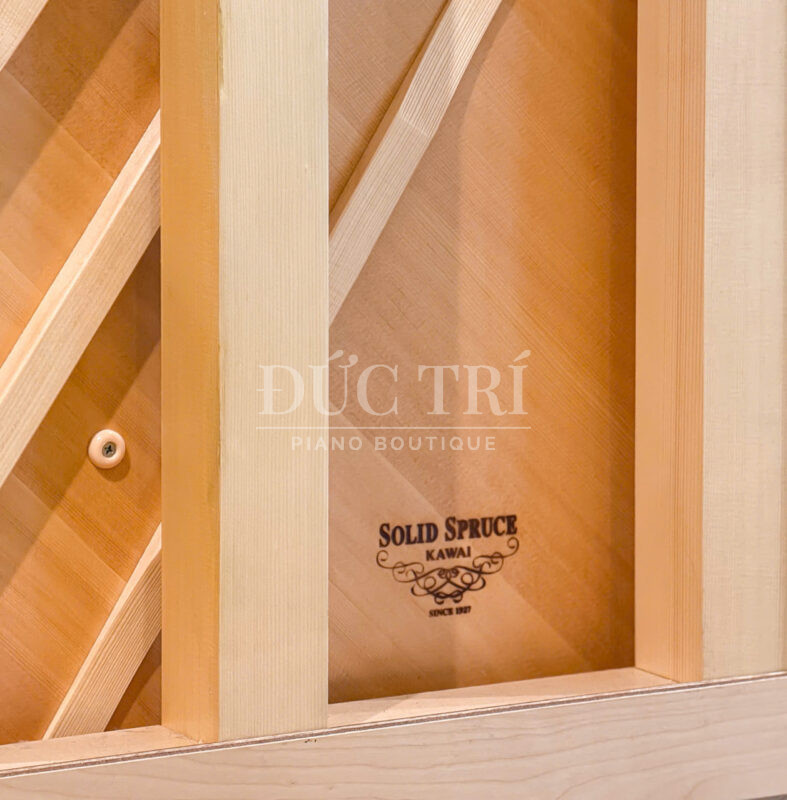 - Khung gang, bảng cộng hưởng và thanh trụ của Kawai K800 được hoàn thiện với chất lượng cao